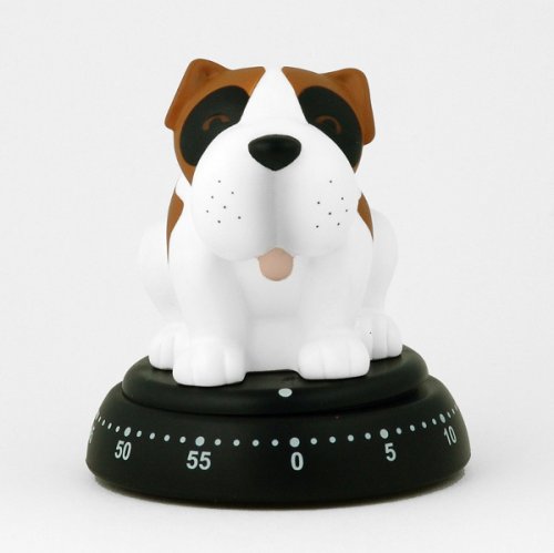 14461700 Dog Timer Features: -Mechanical 60 minute timer. -Plastic body with fun character. -Round black base. -Designed by Bengt Ek. -To use simply turn the dial all the way round, then back to the required time. -Beautifully packaged in a stylish matt black gift box.