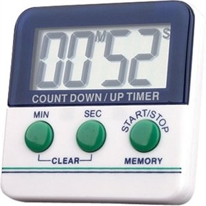 Large digital display. Extra loud alarm. Hours and minutes or minutes and seconds models available. Requires one AA battery - supplied.
