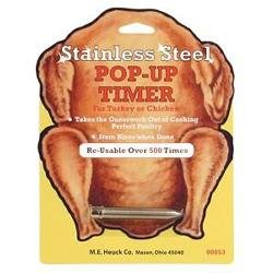 The turkey is done when it reaches 185 degrees Fahrenheit and this re-usable stainless steel timer simply pops up to let you know. Simple and stress free!